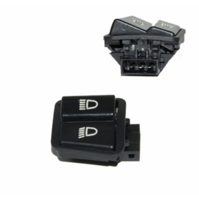 De schakelaar past in het stuurhuis (links) en maakt het mogelijk om makkelijk te schakelen tussen grootlicht en dimlicht. Dit is een aftermarket onderdeel, bedoeld als mod. orig vervanging voor het originele onderdeel. Ideaal bij slijtage of een defecte schakelaar.