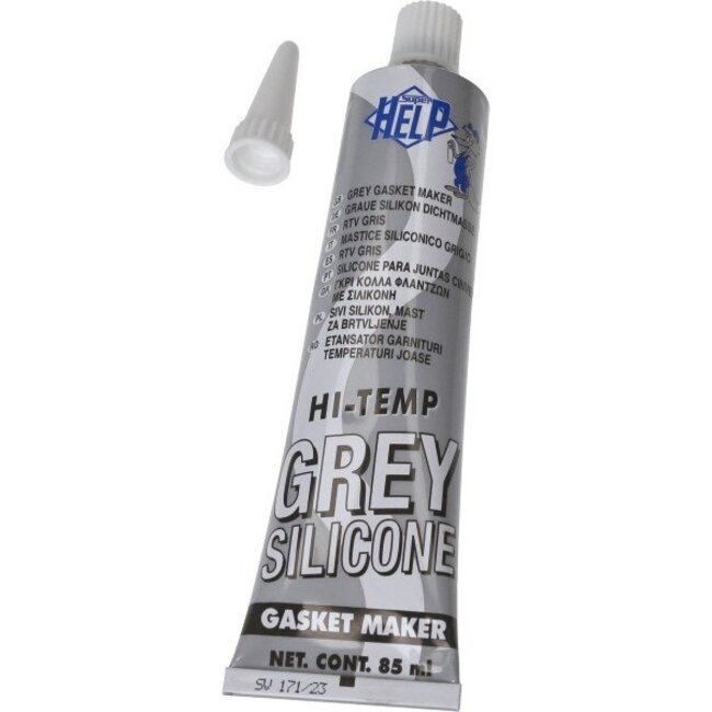 De grijze vloeibare pakking van Super Help is geschikt voor het afdichten van cilinderkopdeksels, kappen, flenzen, verbindingen, uitlaatspruitstukken en nog veel meer. Het hecht aan vilt, hout, metaal, rubber, papier, stoffen en glas. De vloeibare pakking is een pakkingvervanger op basis van flexibele silicone. Super Help vloeibare pakking kan gebruikt worden ter vervanging van voorgevormde pakkingen of voorgaande vloeibare pakking op flenzen met grote toleranties of grote verschillen in thermische uitzetting. Temperatuur bestendig van -62? tot +315?.