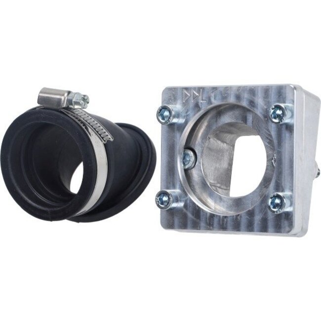 Inlaatset CNC 35-40mm PWK spacer + draaibaar spruitstuk. Aansluit diameter 46mm