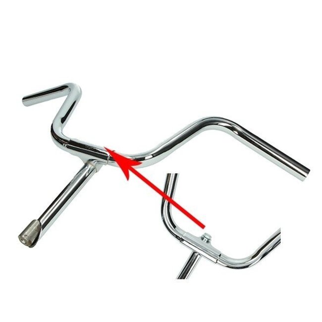 Verchroomd stuur met pen voor Puch Maxi N, Puch Maxi en Puch X30. Klassiek design met 580 mm breedte en 180 mm hoogte. Past op 21 mm stuurpenbuis. Lees meer.