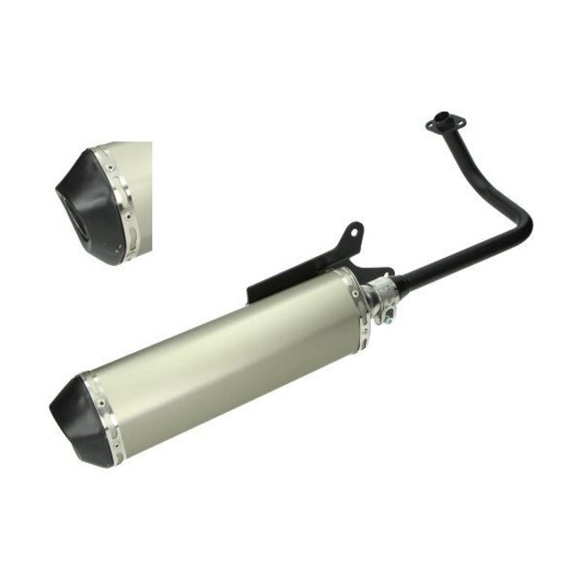 Let op: Deze uitlaat is vooral geschikt voor scooters met het GY6 motorblok en een enkele schokbreker. Controleer voor aankoop goed of jouw scooter aan deze specificaties voldoet.